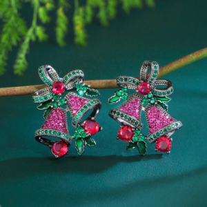 Cubic Zircon Ribbon Bells Green leaf Flowers needle Stud earrings